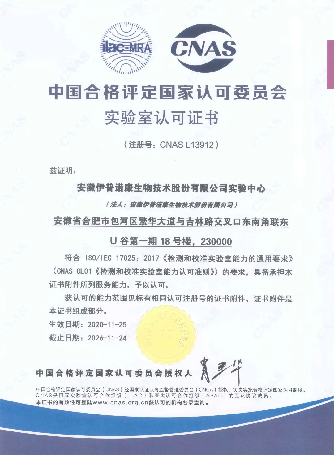 伊普诺康实验中心通过CNAS认可