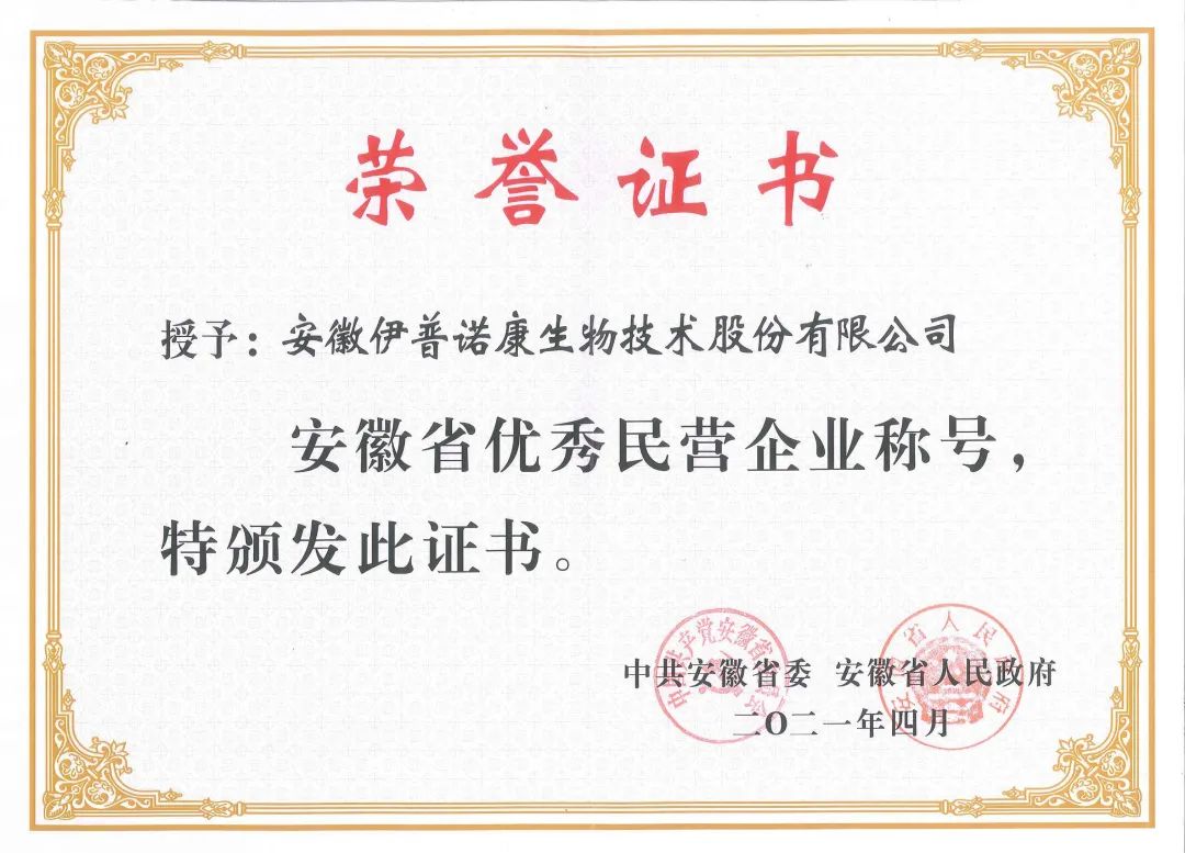 伊普诺康荣获“安徽省优秀民营企业”称号
